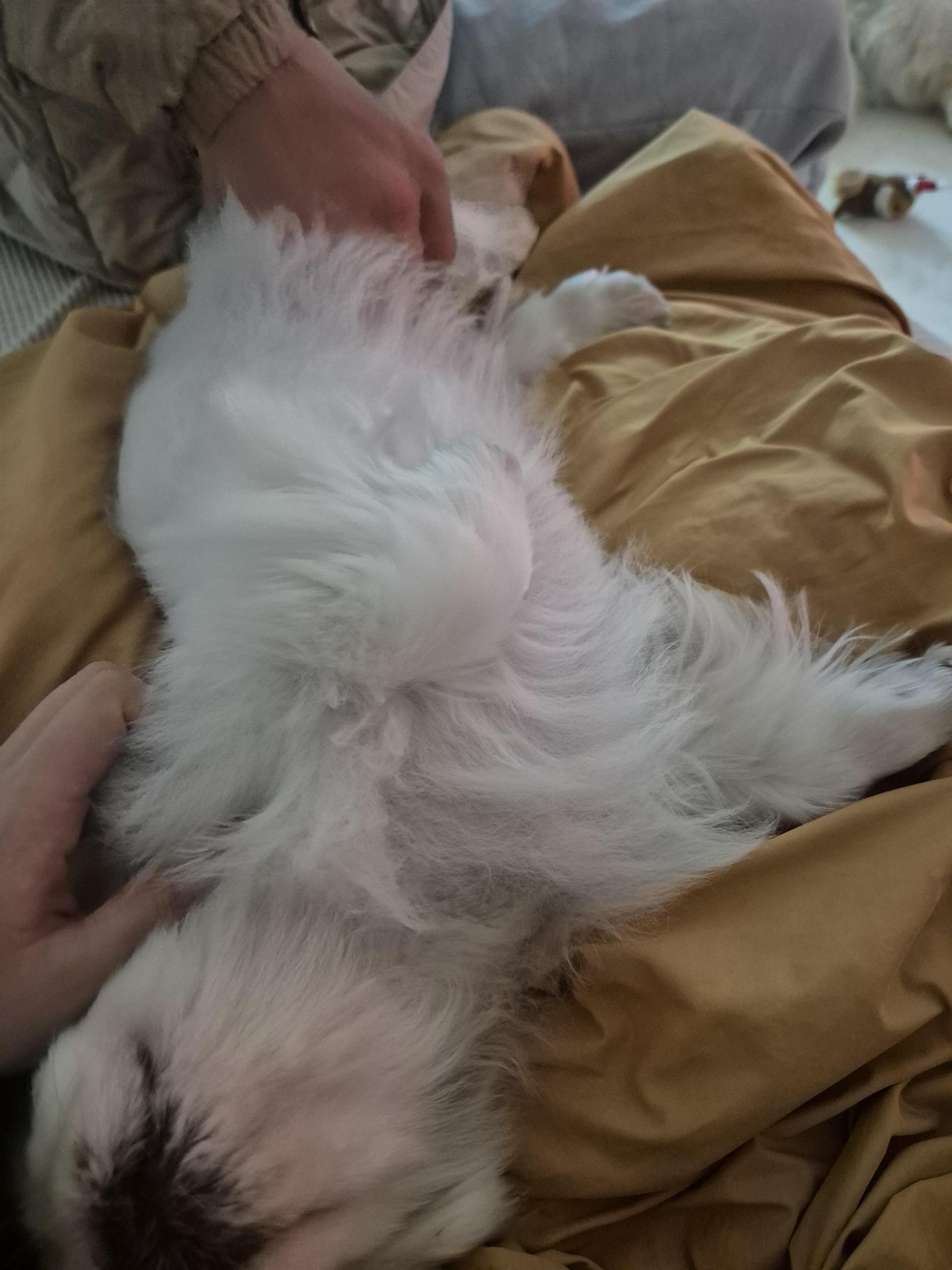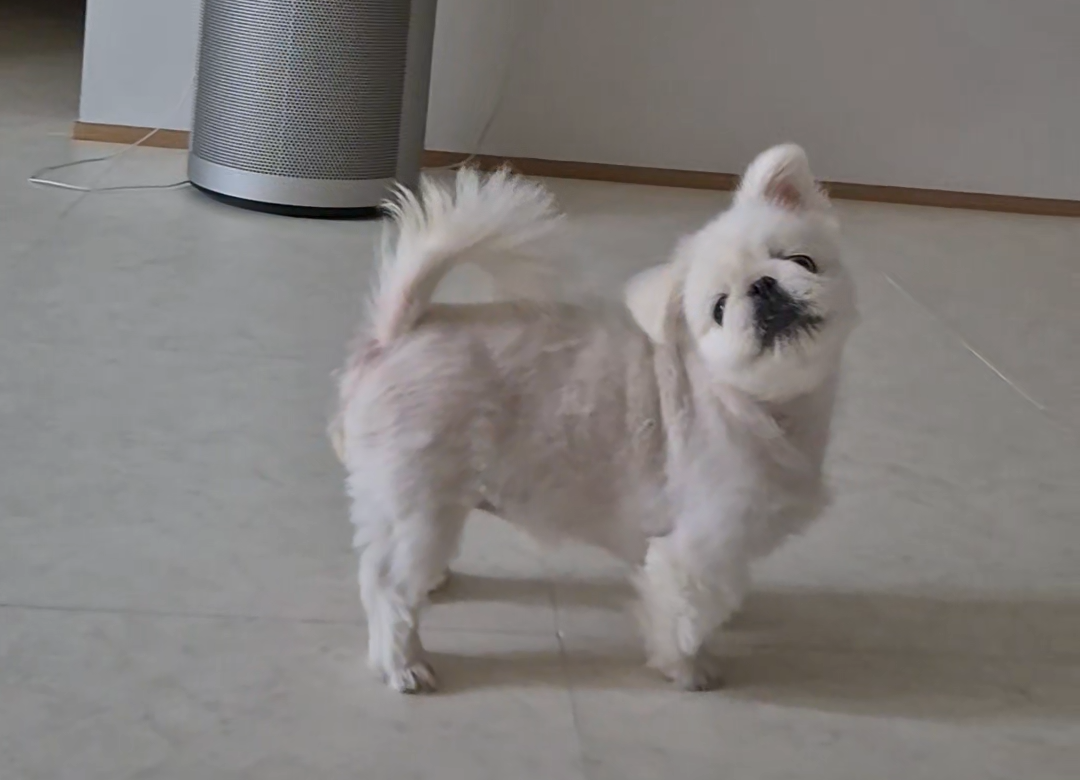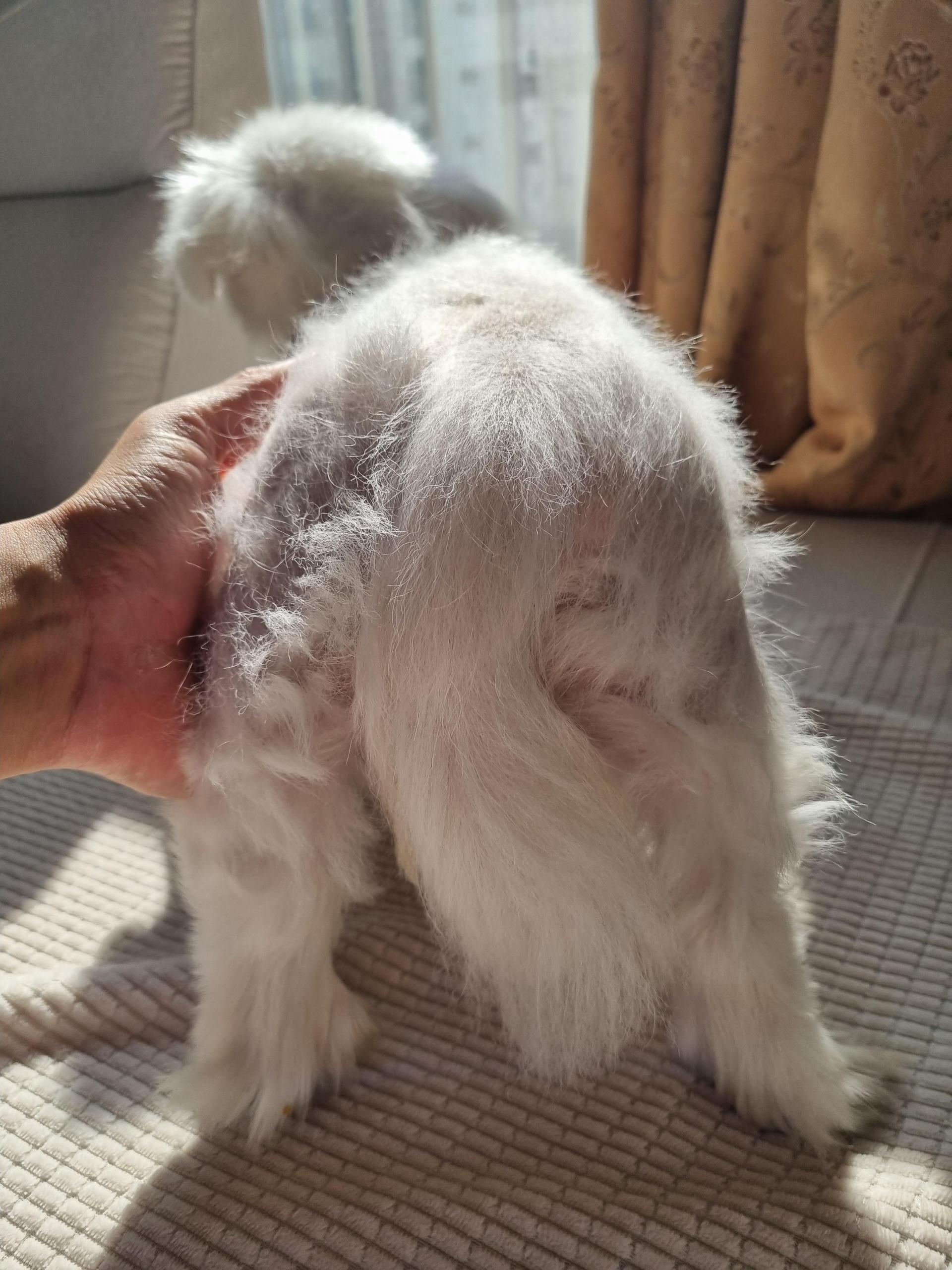 뭉이는 위생 미용을 진행하였으며, 털이 일부 부위에서 자라고 있다는 점이 확인되었습니다.