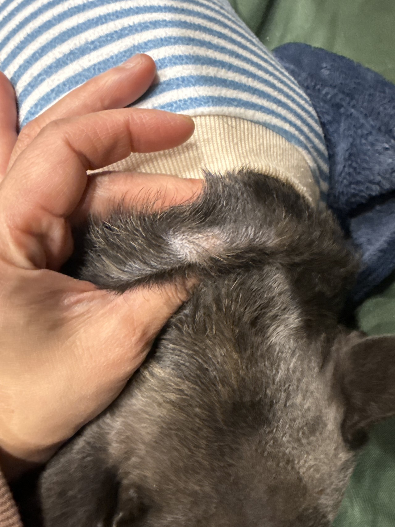 사료 섭취는 이어지고 있으나, 관리 목욕 후 각질이 증가한 것으로 확인되었습니다.
