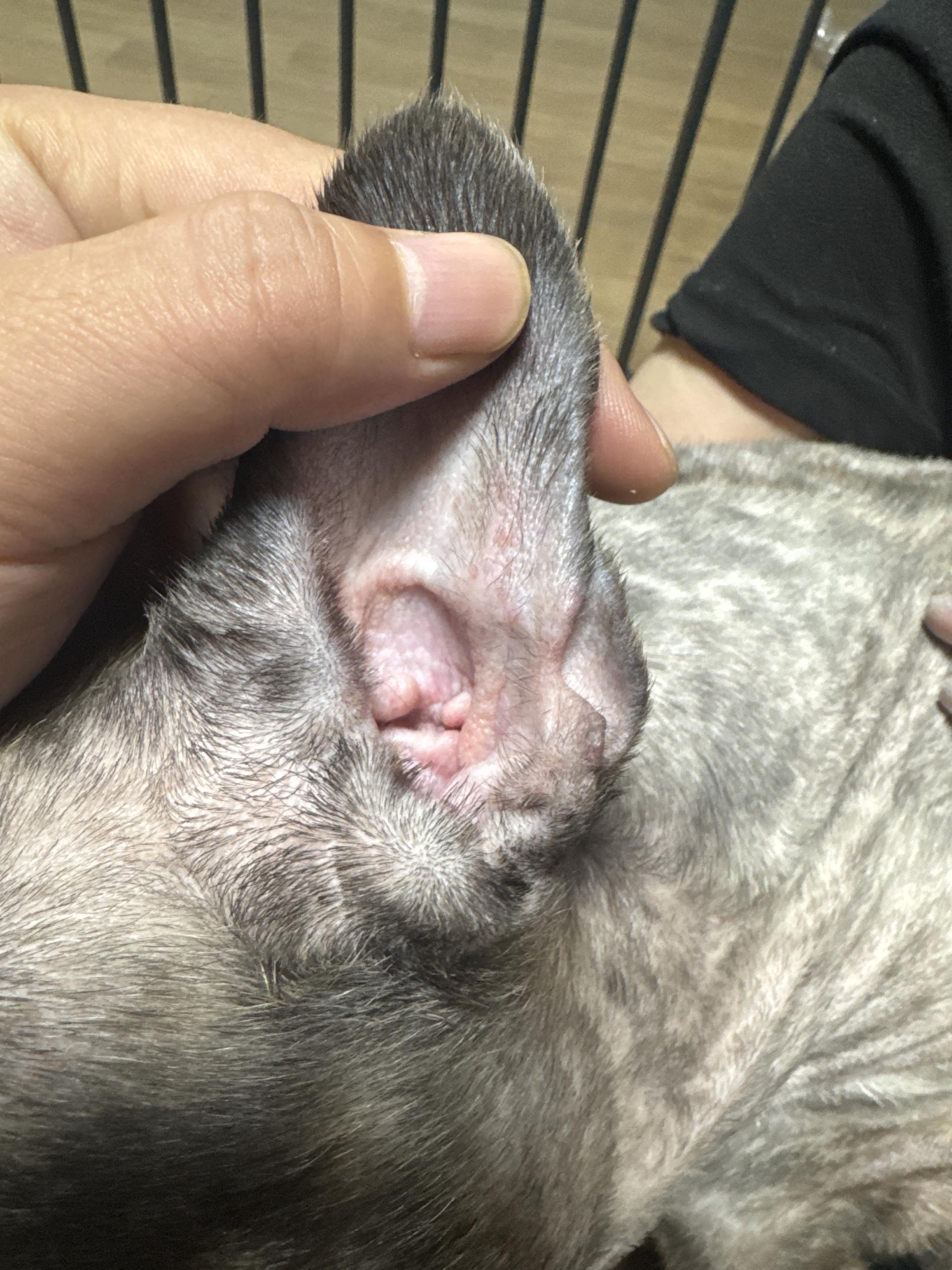 귀 염증 반응은 없으나 일시적인 긁기 행동이 관찰되었으며, 조기 발견으로 상처는 경미한 수준으로 확인되었습니다.