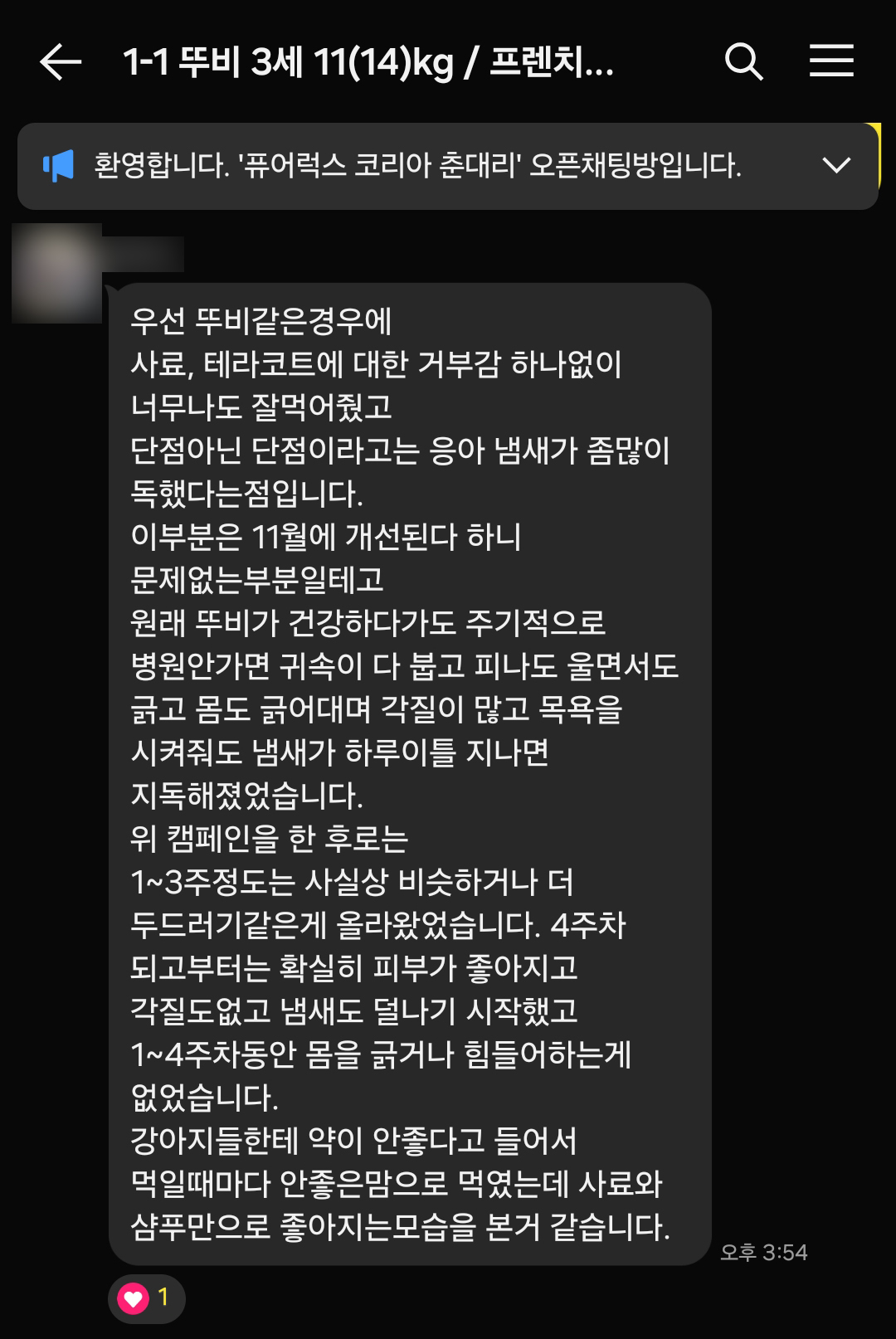 퓨어럭스 코리아의 가이드를 성실히 따른 보호자님과 반려견의 리서치 기록입니다.