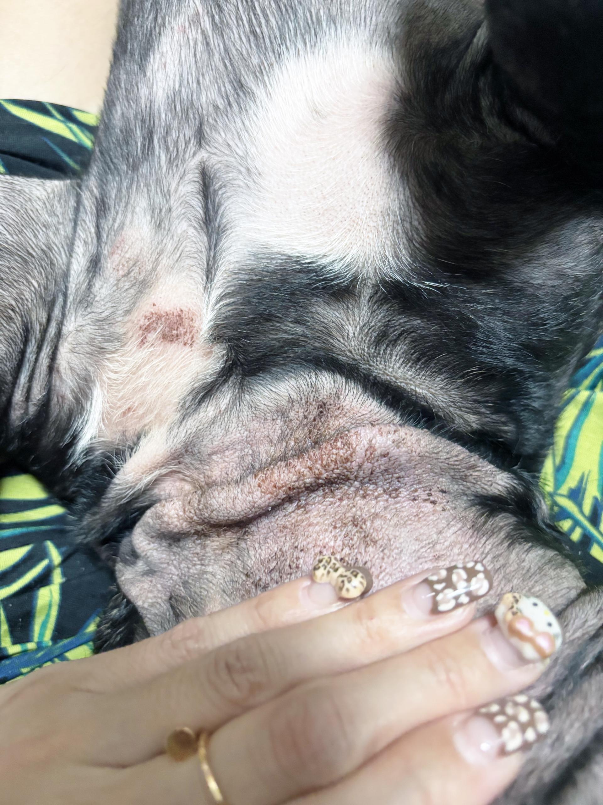귀·목·흉곽 부위를 중심으로 가려움이 매우 심한 편이며, 비가 오거나 습도가 높은 날에는 털 빠짐과 가려움이 현저히 심해집니다. 어릴 때부터 아토피 증상이 지속되어 사이토포인트와 아포퀠을 급여 중이며, 증상 호전이 부족할 경우 스테로이드를 병행 급여하고 있습니다. 귀 안쪽은 상시 습한 상태가 유지되는 편입니다.