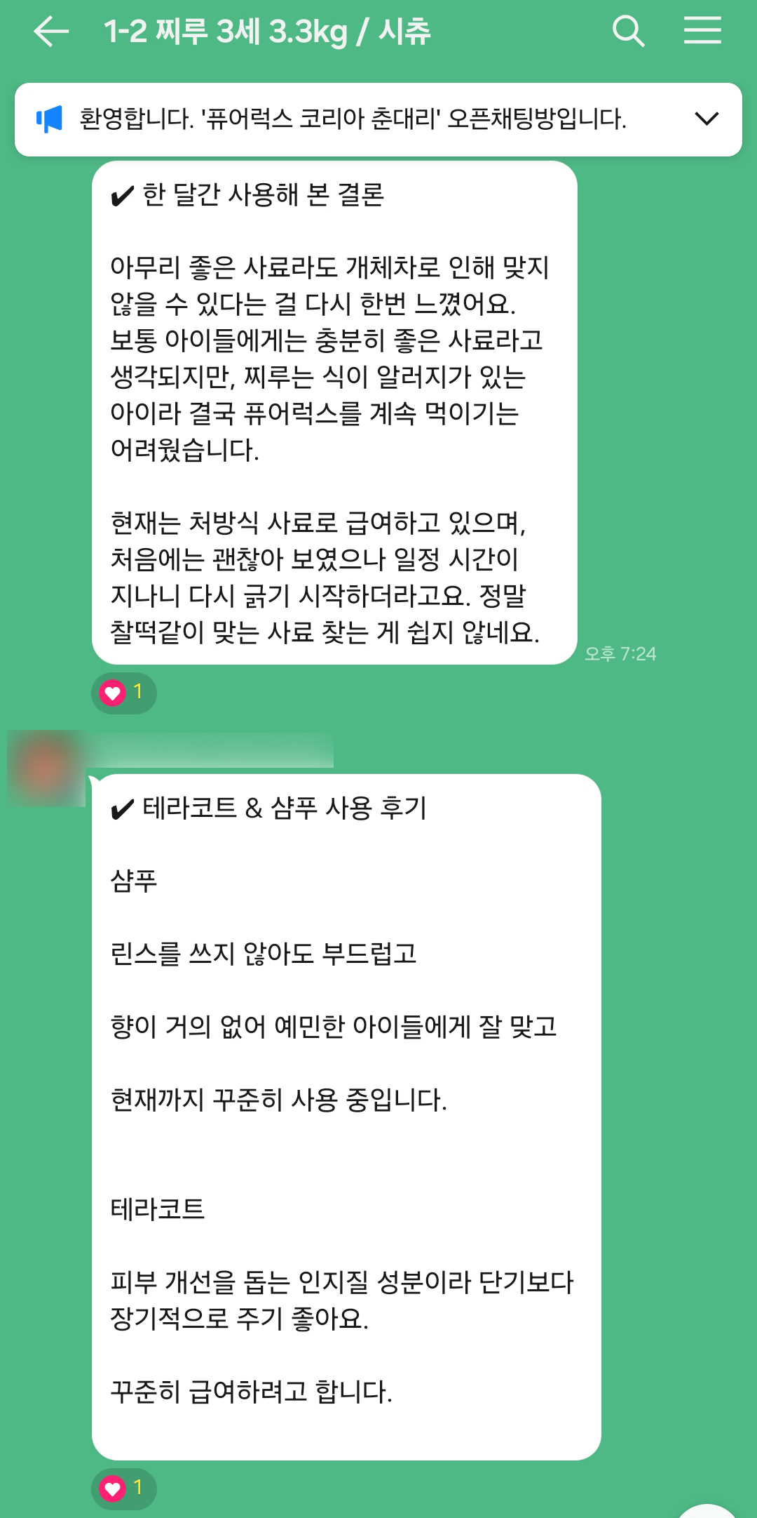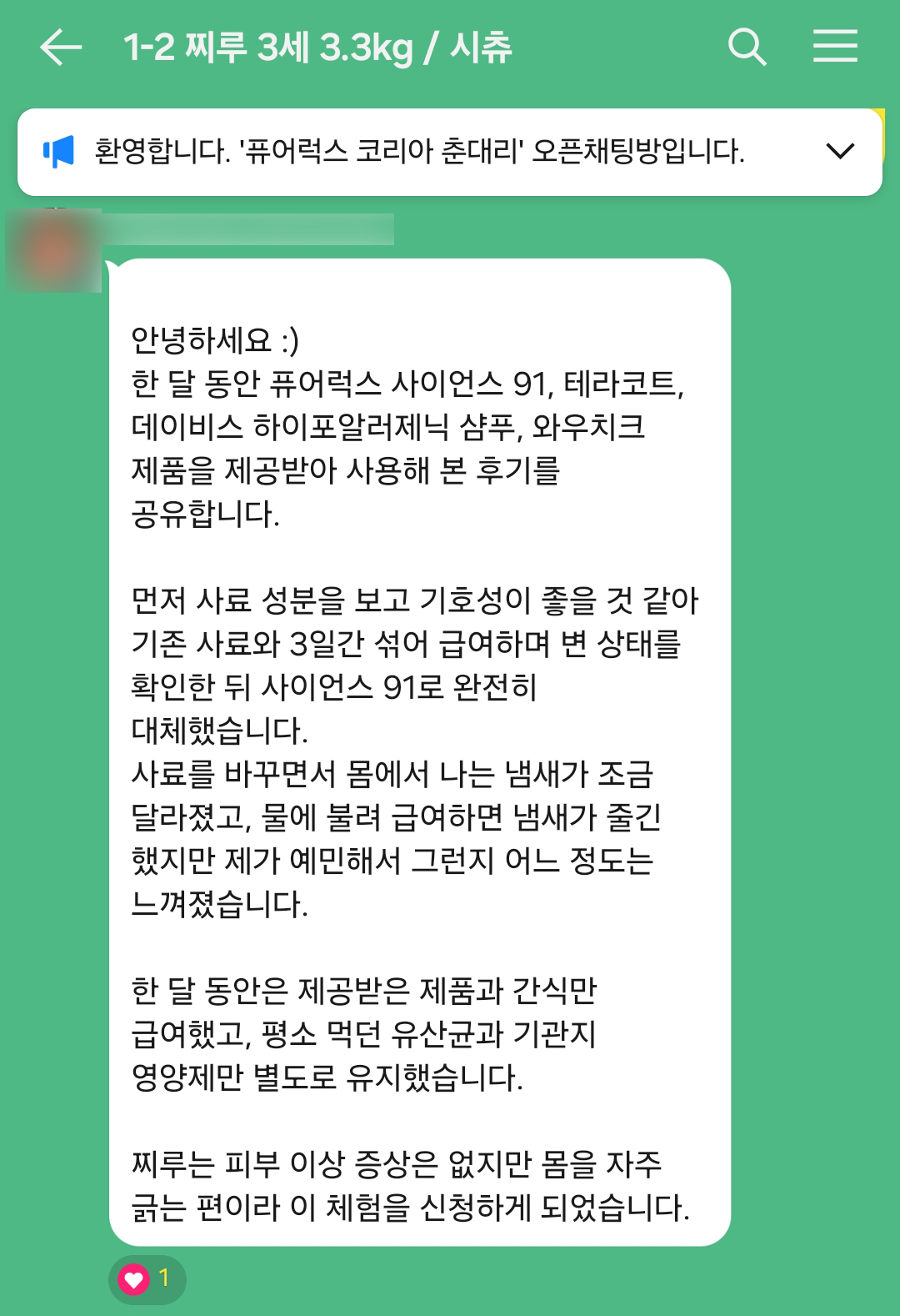 퓨어럭스 코리아의 가이드를 성실히 따른 보호자님과 반려견의 리서치 기록입니다.