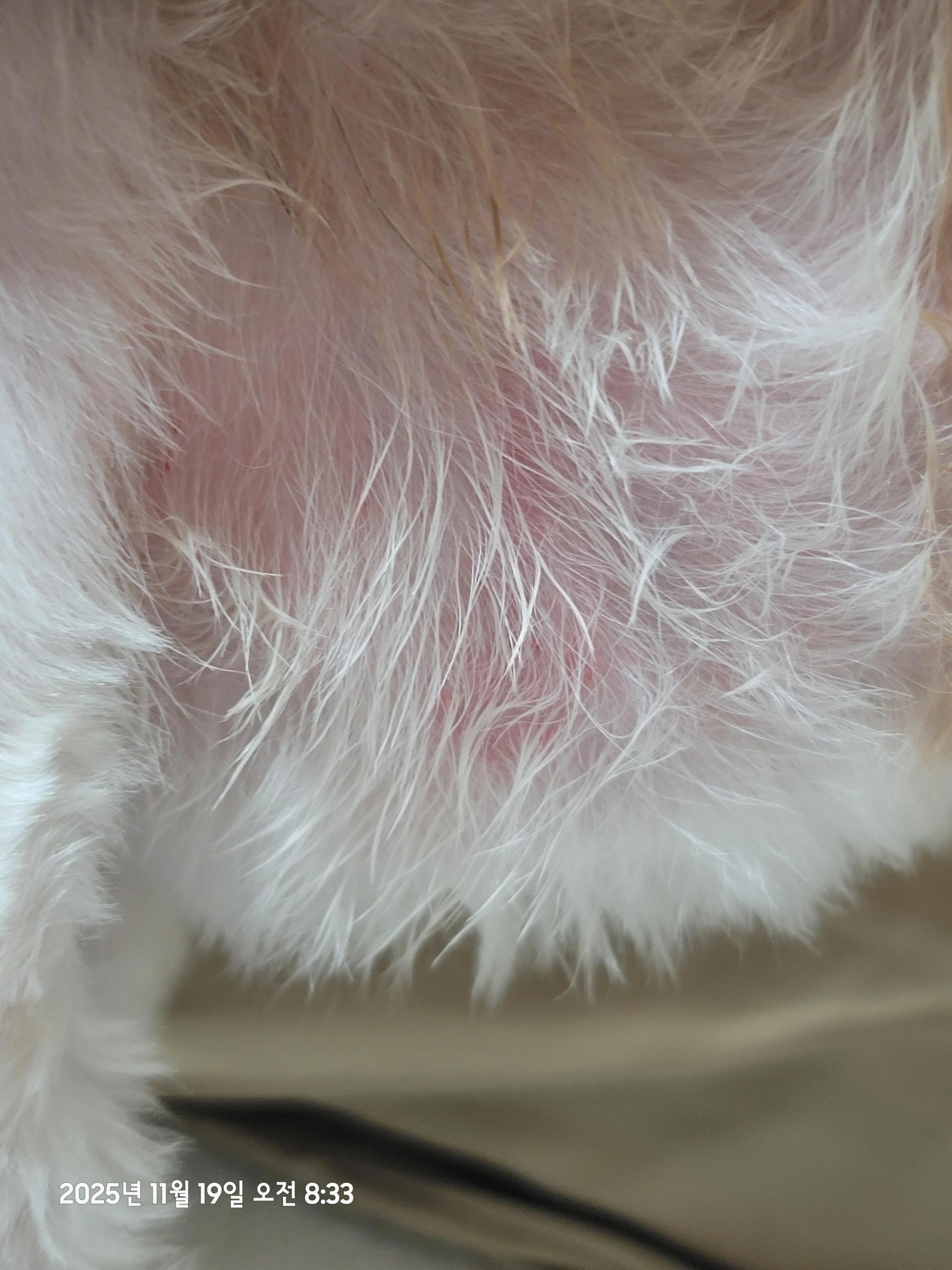 관리 목욕 방법 적용 이후 긁는 행동이 이전 대비 다소 완화되었으며, 가습기를 지속적으로 가동 중인 것으로 전달받았습니다.